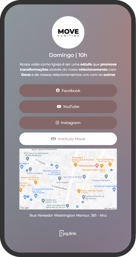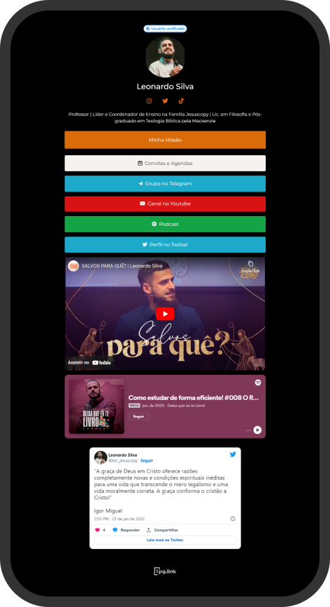 "A 1pg.link foi a plataforma que mais me ajudou na organização de links e informações. O atendimento e design são diferenciais notáveis. Recomendo!"